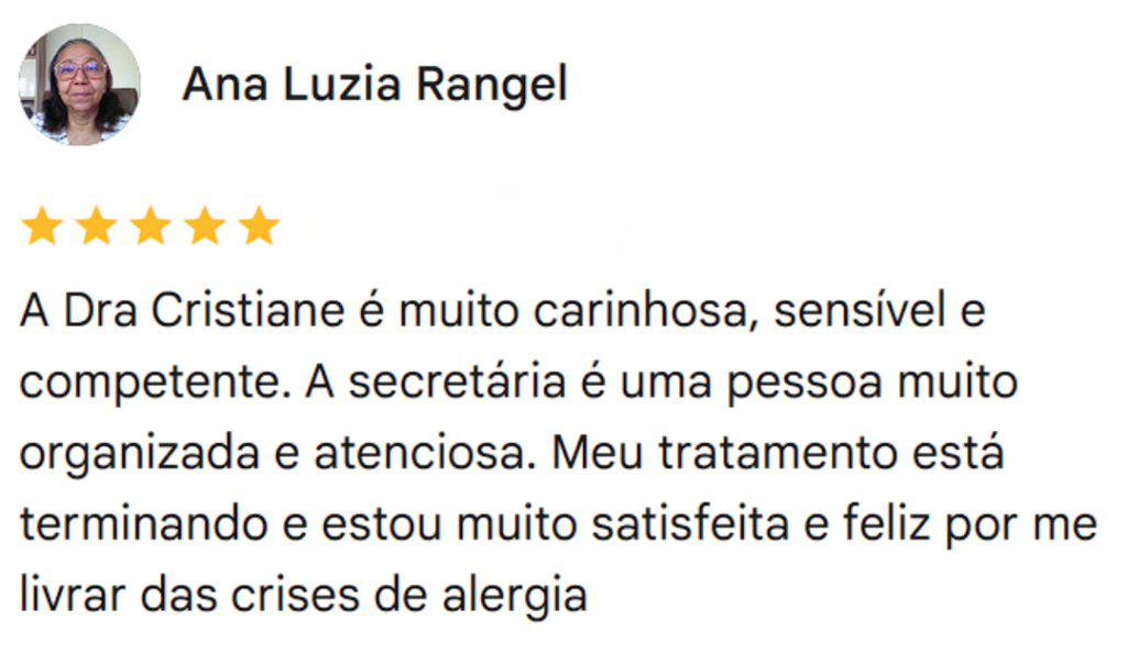 Me chamo Cristiane de Deus, sou Alergista e Imunologista há 20 anos, com minha formação clínica inicial em Pediatria.